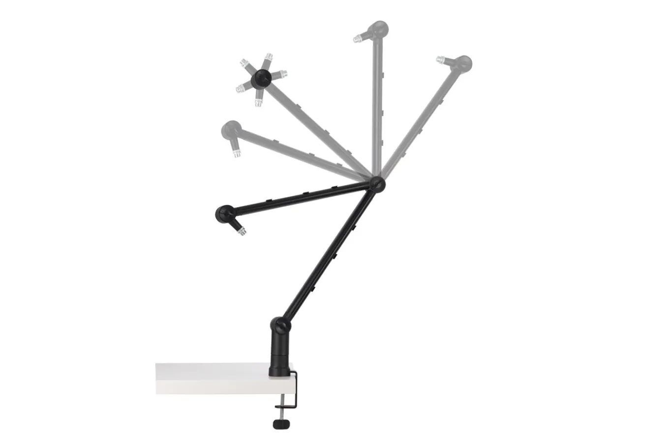 - A flexible mounting solution for microphones, webcams, and lights so you can quickly position your accessories in the best location and at the best angles (accommodates 3/8”, 1/4” and 5/8” connections).