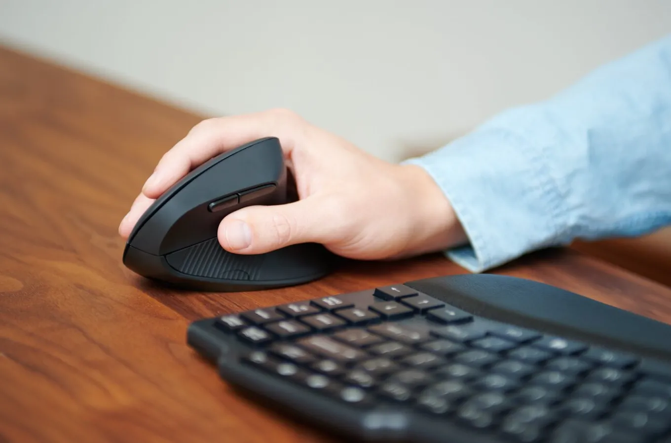 Contoured natural slope keeps the wrist in a neutral handshake position to support all-day ergonomic comfort and productivity. Full-size vertical design offers enhanced precision and control and comfortably supports larger hands.
