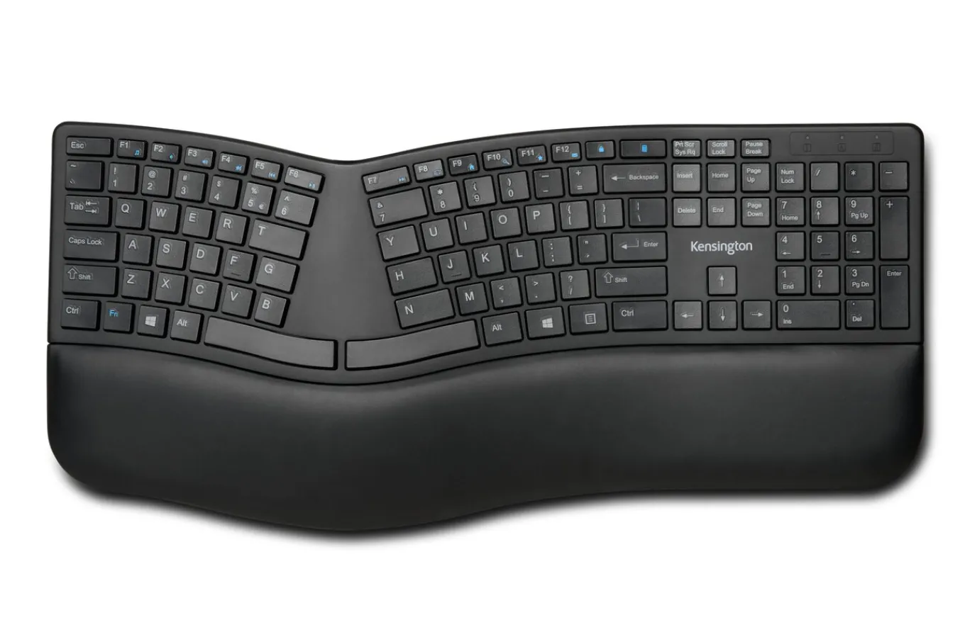 With its split and sloped keyboard with adjustable reverse tilt and built-in wrist rest, the ergonomist-approved Pro Fit® Ergo Wireless Keyboard positions your hands for improved comfort. Features include dual wireless (2.4 GHz and Bluetooth 4.0 LE) with 128-bit AES encryption security; quiet typing; spill-proof keys; F-keys for shortcuts; caps lock, numbers lock, and scroll lock; a three-mode power-saving switch; and a replaceable receiver*. * In the event the receiver is lost or damaged, simply purchase a new one, pair it with your mouse, and you’re all set.