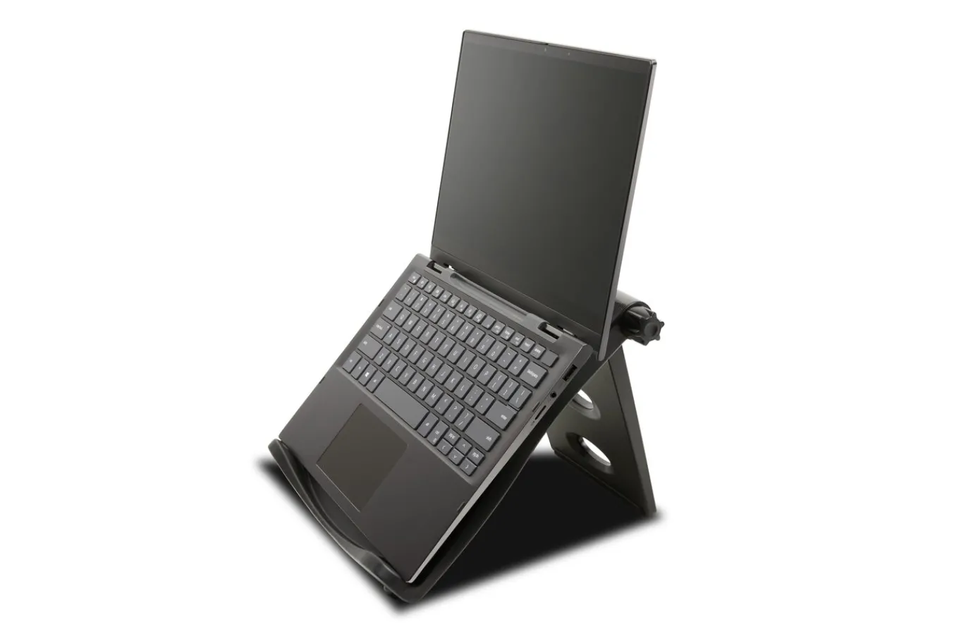 Laptops have become essential travel companions for most professionals. This has created a variety of productivity challenges, from ergonomic issues, such as poor posture and eye strain, to tech problems like overheating laptops. Supporting the right setup at work, at home, and on the move can be challenging. Combining the ergonomic benefits of raising your screen height with the technological benefits of increased air circulation for your laptop, the SmartFit™ Easy Riser™ Laptop Cooling Stand is a practical mobile companion. Accommodating for 12-17" laptops, its 2-in-1 design is height and angle adjustable to improve posture, promote proper eye alignment and support neck and shoulder comfort, while promoting airflow to improve battery performance and ease the strain on internal components. Thoughtfully engineered for portability, it is a useful workstation accessory for the modern professional.