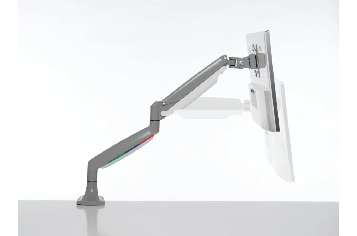 Monitor arms allow for improved ergonomic positioning of computer displays, which can help reduce neck and eye strain associated with prolonged computer use. Improve posture, promote proper eye alignment and support neck and shoulder comfort with the SmartFit™ One-Touch Height Adjustable Single Monitor Arm. Ergonomically designed to promote wellness and increase productivity, it simplifies proper ergonomic fit and allows users to adjust the height, depth and angle of their monitor for individualized comfort. Stable at any monitor position, it allows you to easily switch from landscape to portrait mode.