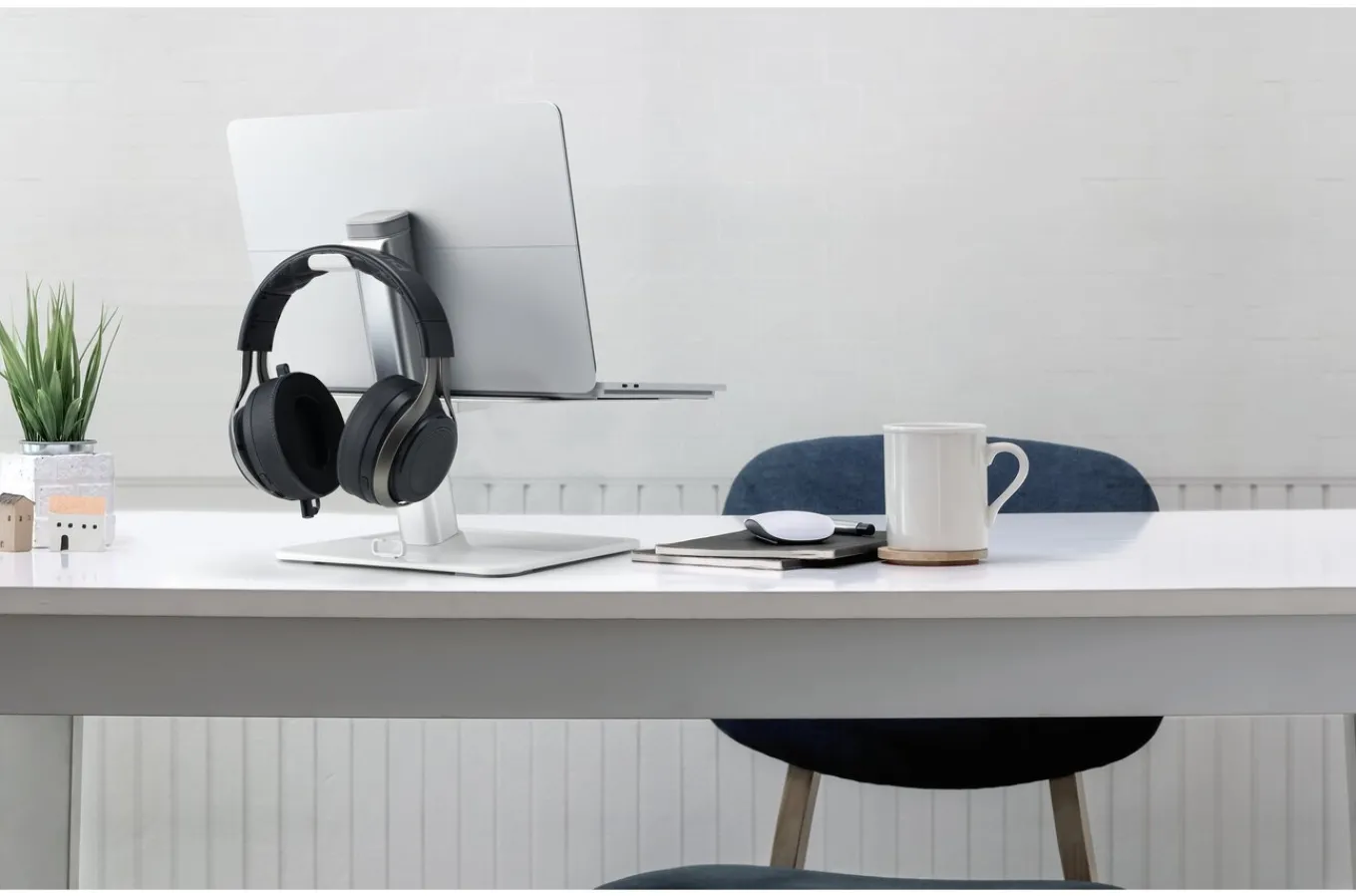 Designed for Surface and developed in partnership with Microsoft, the SmartView™ Organizing Laptop Riser is an all-in-one solution to manage your Surface desktop setup or any laptop up to 16". Features include five-level SmartFit™ height adjustment with a maximum height support of 22cm (8.66in), which takes the guesswork out of finding the most ergonomic height; a hanger to keep your headset there when you need it, out of the way when you don’t; fabric-covered docking station storage, which conveniently and neatly houses a number of Kensington and Microsoft Surface docking stations (to ensure accessibility to all ports, a 90-degree port adapter may be necessary for some docking stations); sturdy metal construction, to match the Surface look and feel, and for a solid, stable solution; cable management for a tidy desktop; a ventilated platform that promotes air circulation, optimizing device performance and battery health; easy assembly with included tools; and a non-slip rubber base.