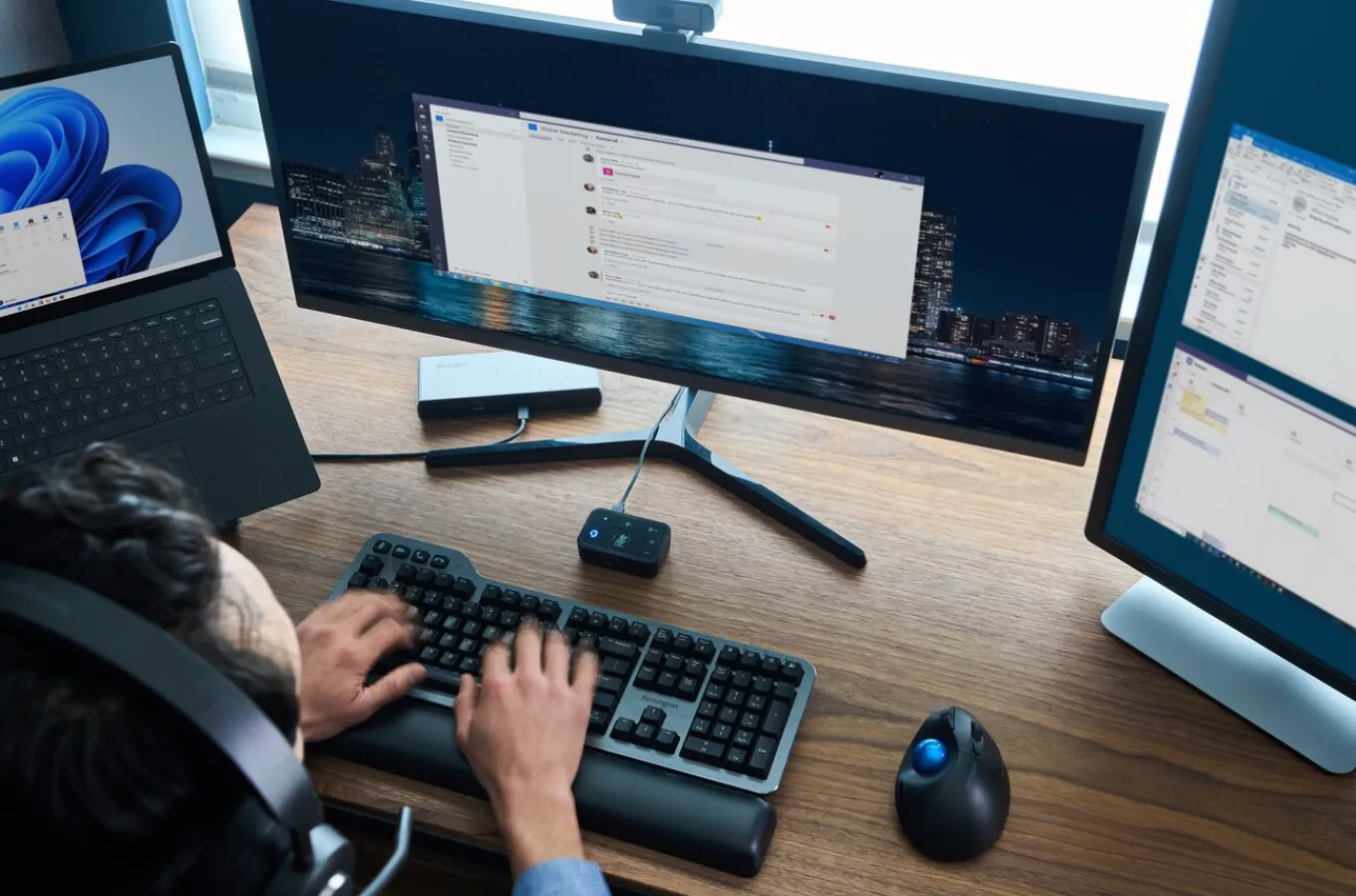 Kensington’s Universal 3-in-1 Pro Audio Headset Switch allows professionals to use their favorite wired or wireless headset (Bluetooth, USB-C, USB-A, or 3.5mm) as they switch between different devices (laptops, phones, and tablets). Accommodates up to three different audio sources, automatically remembers previously paired devices, eliminates the need for multiple headsets, and works with Microsoft Teams, Google Meet, Zoom, WebEx, and more.